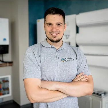 With over 25 years in the HVAC industry, Kelly founded Ocean Current in 2001 to bring reliable, honest service to the area. A lifelong coastal resident, he’s passionate about helping neighbors stay comfortable in their homes. When he’s not fixing heaters, Jake enjoys fishing and volunteering with local community cleanups.